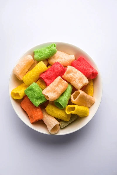 Avinyam Far Far Round Color offers vibrant, multicolored fryums that puff up into crispy snacks when deep-fried. Made from rice and potato starch, they’re light, crunchy, and visually fun — perfect for kids and festive platters.